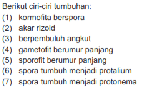 Dari gambar berikut, tumbuhan paku memiliki ciri-ciri ....